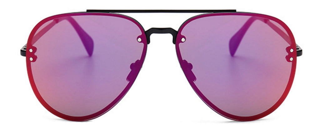 Designer Aviator Sunglasses - Black Frame / Purple Mirror Lens