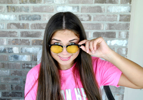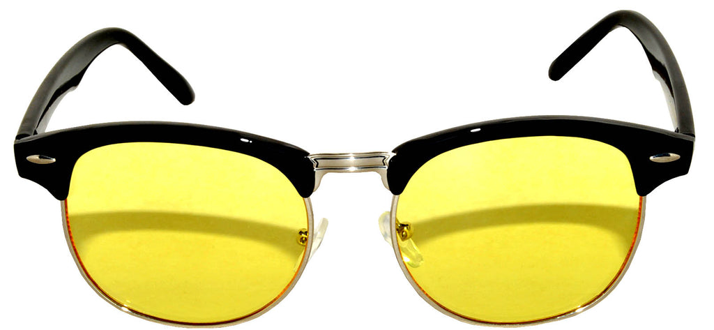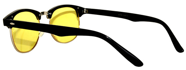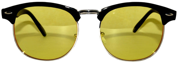 Half Frame Sunglasses / Black Silver Frame / Yellow Lens