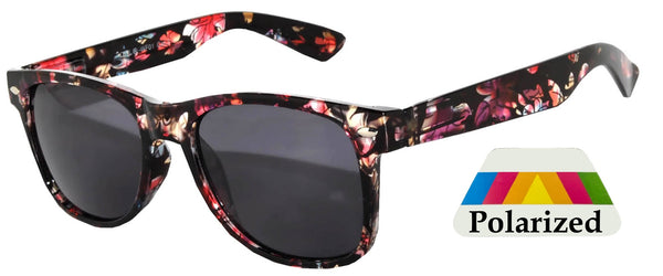 Retro Kids Rectangle Sunglasses - Flower Black Frame / Smoke Polarized Lens