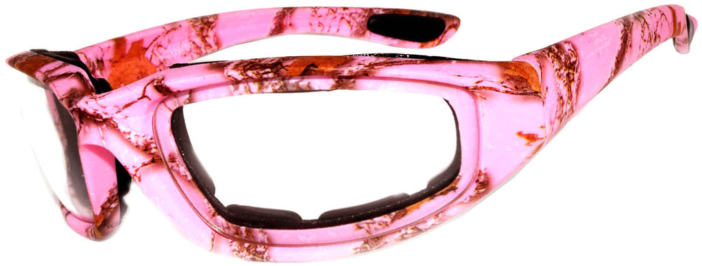 Motorcycle Sunglasses - Camo Pink Frame / Clear Lens