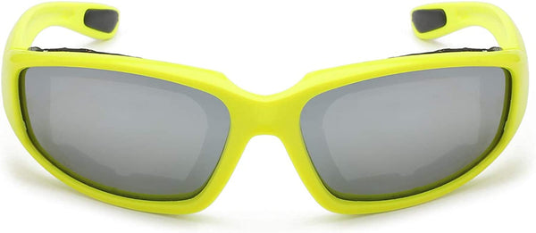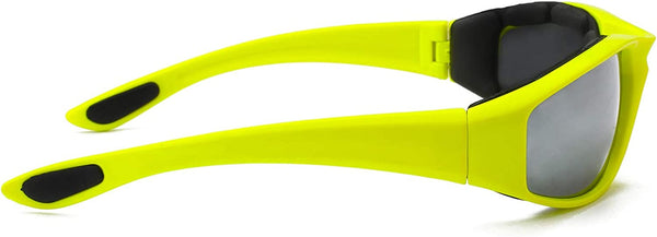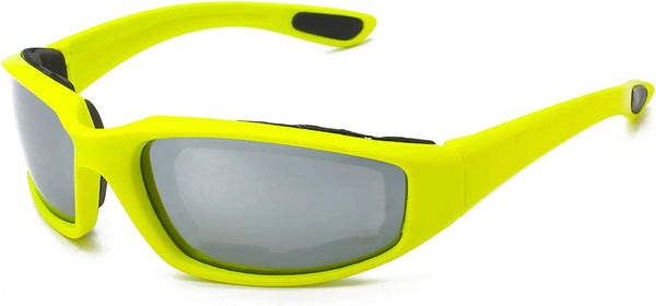 Motorcycle Sunglasses - Neon Yellow Frame / Silver Mirror Lens