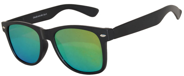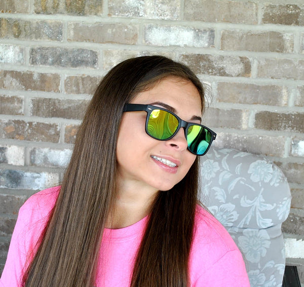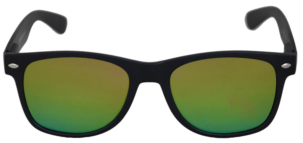 Flat Retro Sunglasses - Black Frame / Green Lens